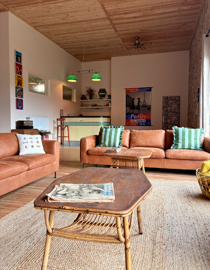 (Re)plongez dans les années 60’s lors de votre séjour à la Foresterie ! Cette ancienne ferme en pierres est meublée et décorée avec 90% de meubles et objets chinés. Située dans un hameau au calme et en lisère d’une immense forêt, elle peut accueillir confortablement jusqu’à 17 personnes.